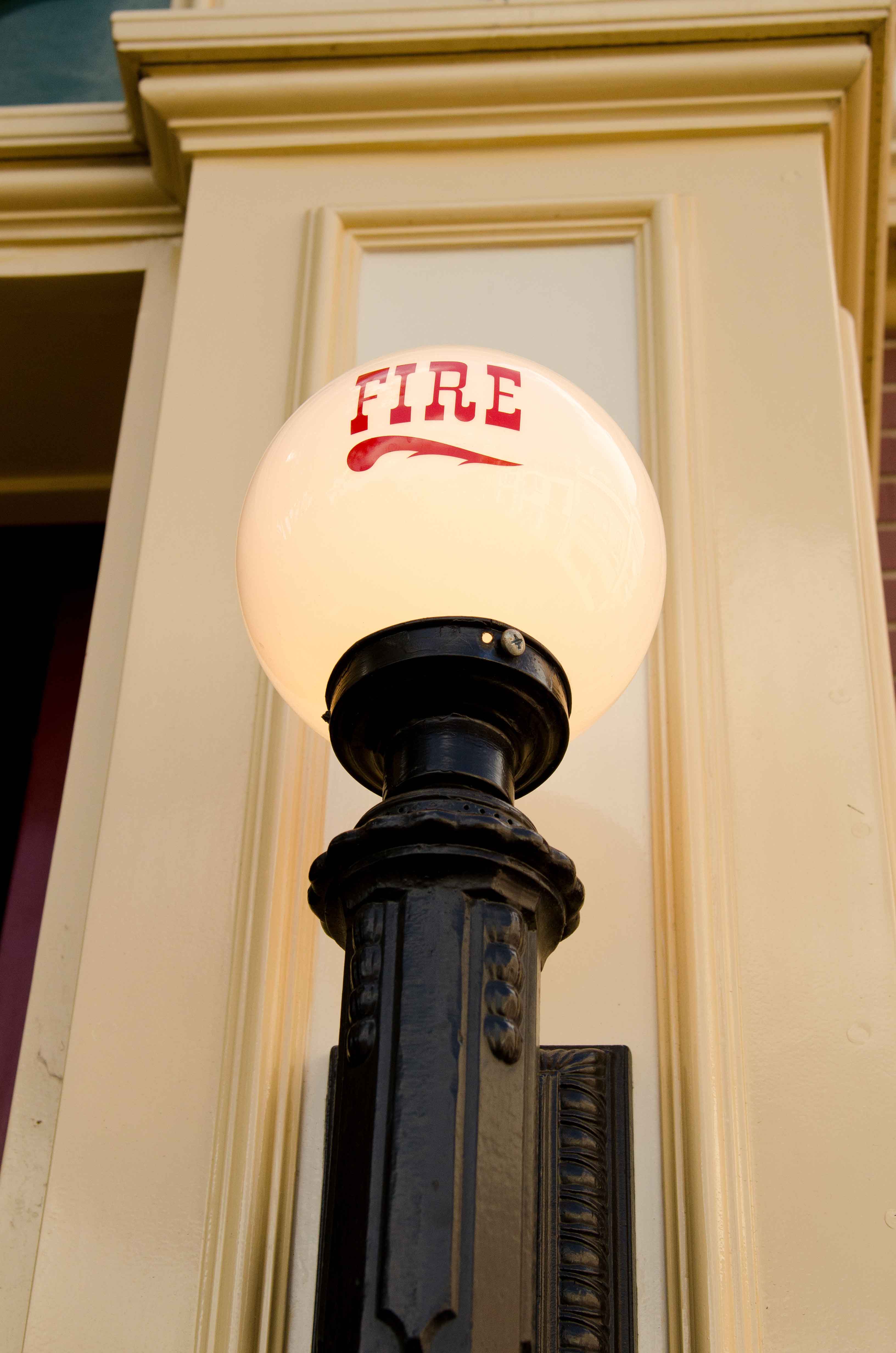 When I arrived I saw the fire truck parked facing in a southeasterly direction with its red lights flashing in the night. A fire hose was pulled across the street toward the burned vehicle.