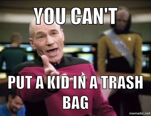 “We got a call about a kid inside a trash bag in the bathroom.”